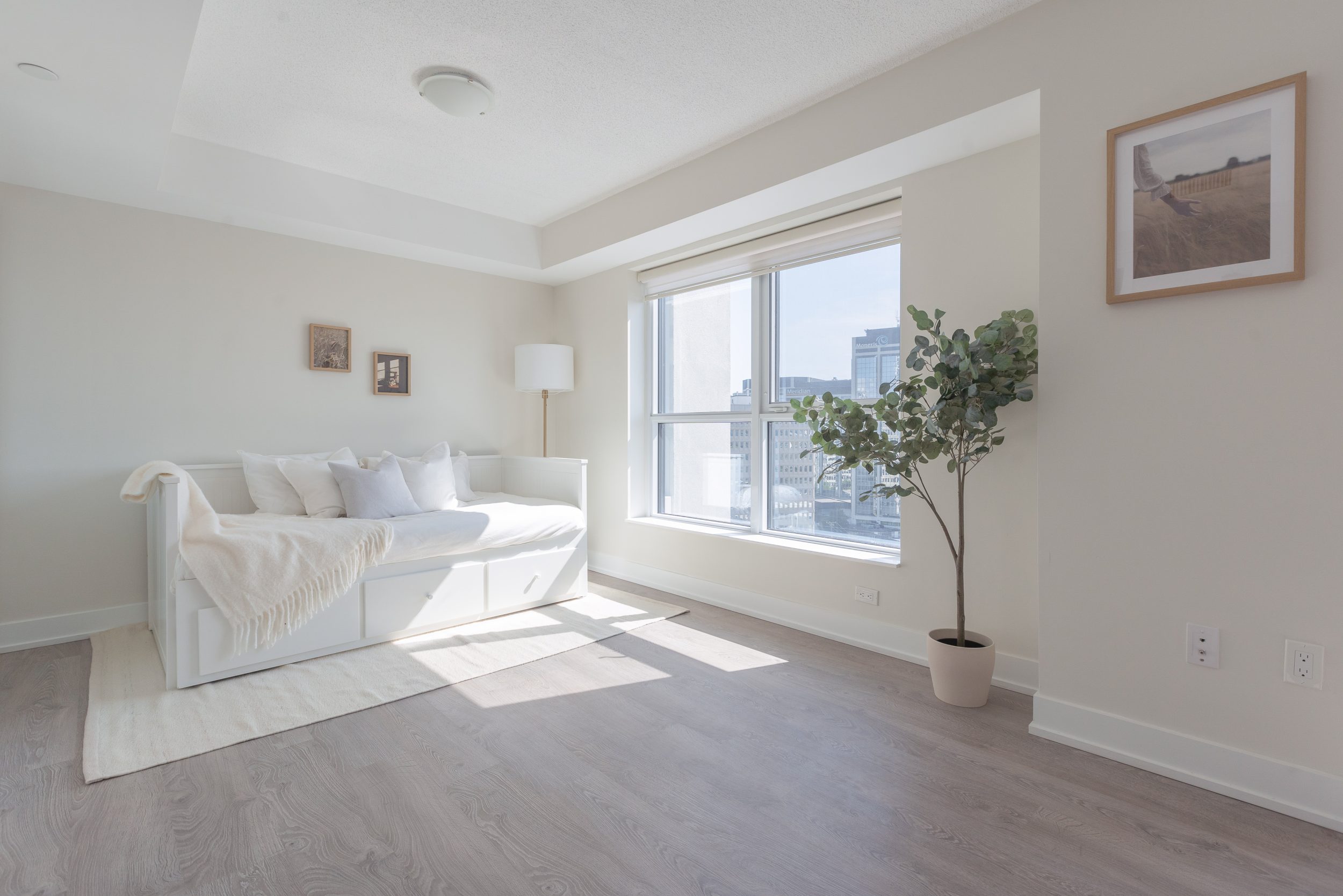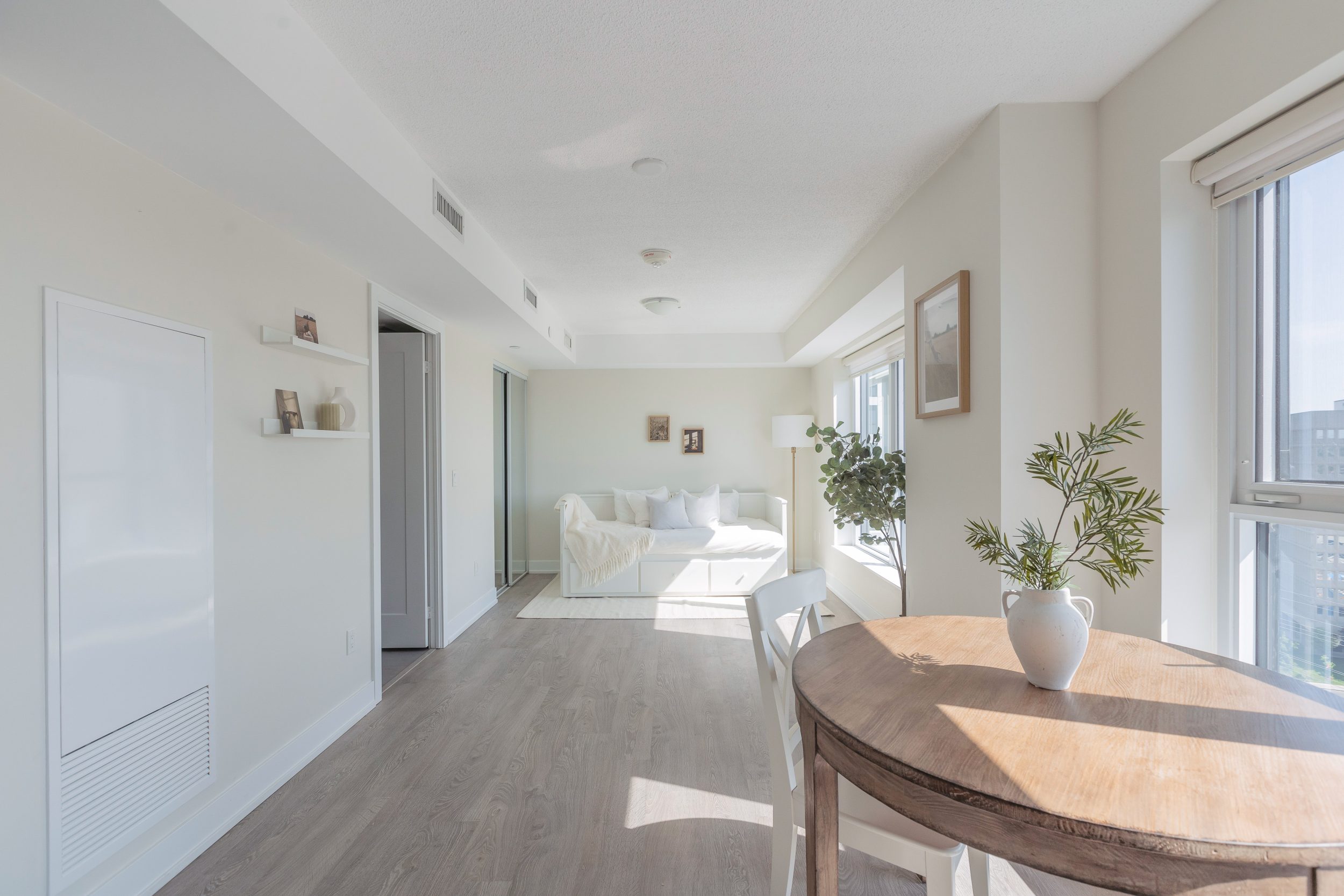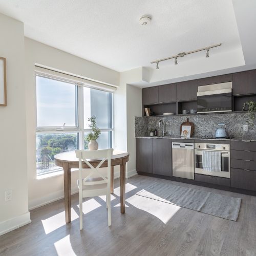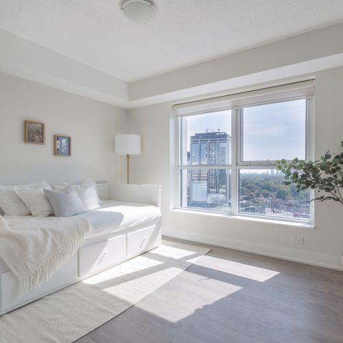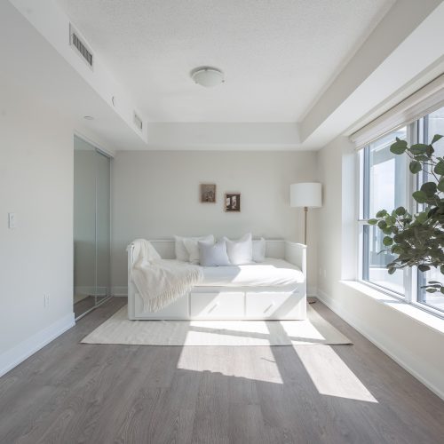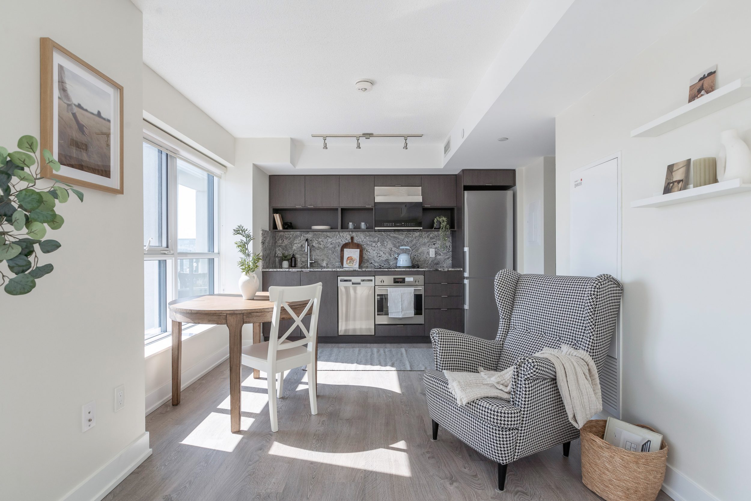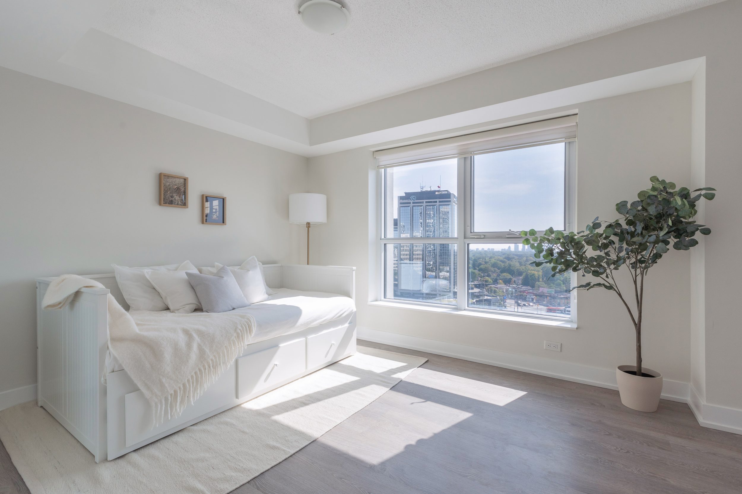 Welcome to BloorVista by Tridel. Suite 1423 is a rare find – a studio that’s spacious and functional to meet all needs. The smart south-facing layout is flooded with natural light from two oversized windows, framing lake views that make mornings a little brighter. Finishes include premium laminate floors, sleek cabinetry, granite counters, built-in appliances, and custom closet organizers that maximize storage. A locker is also included, so everything has its place. The resort-inspired amenities check every box: indoor pool, yoga studios, full fitness centre, basketball court, party lounge, games room, theatre, rooftop sundeck with BBQs, concierge, bike storage, pet wash, and visitor parking. Steps to Islington subway, with quick access to the QEW/427/401, Sherway Gardens, local shops, parks, and trails. Downtown in 20 minutes. One storage locker included.