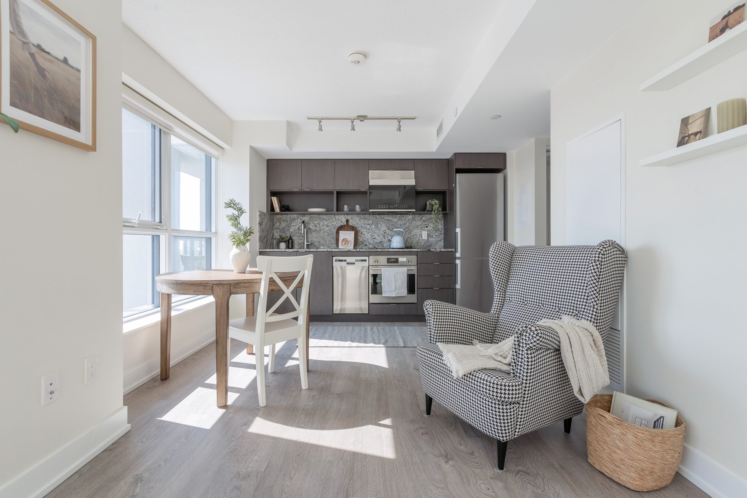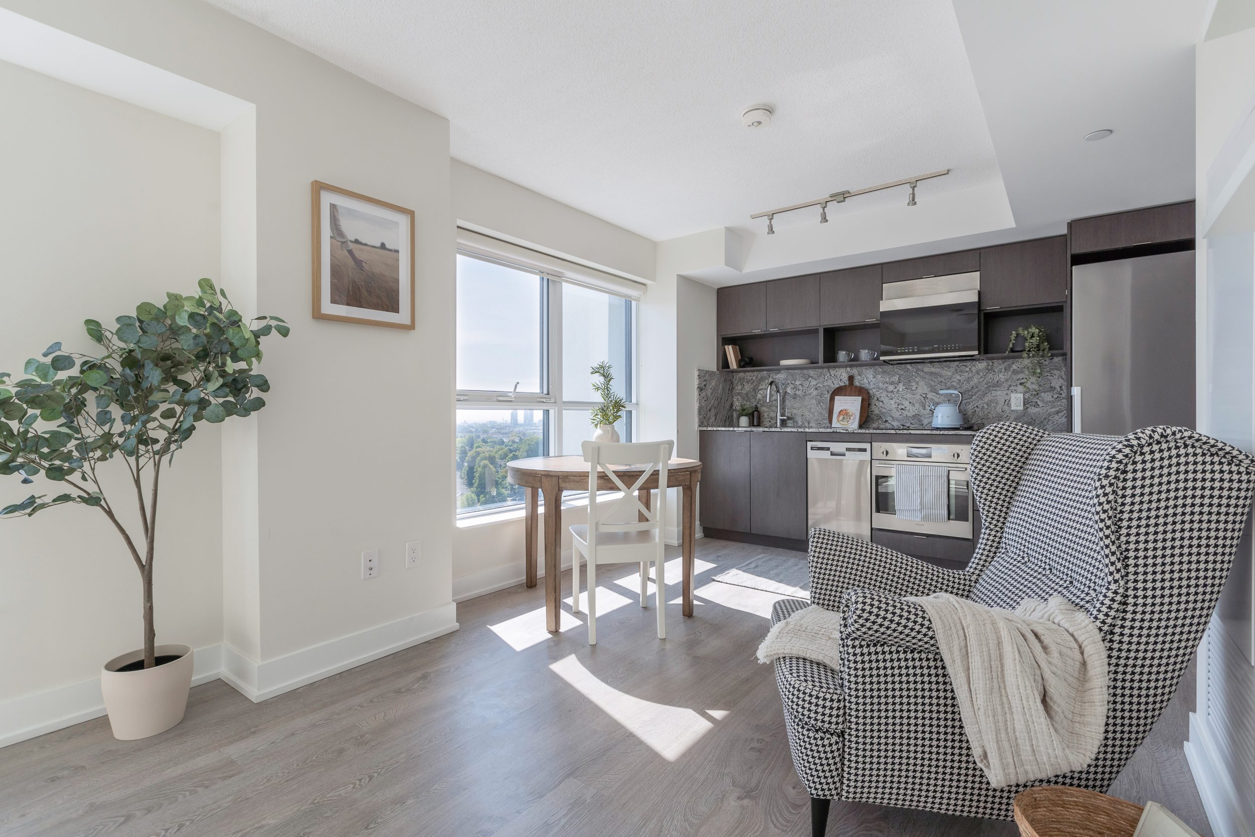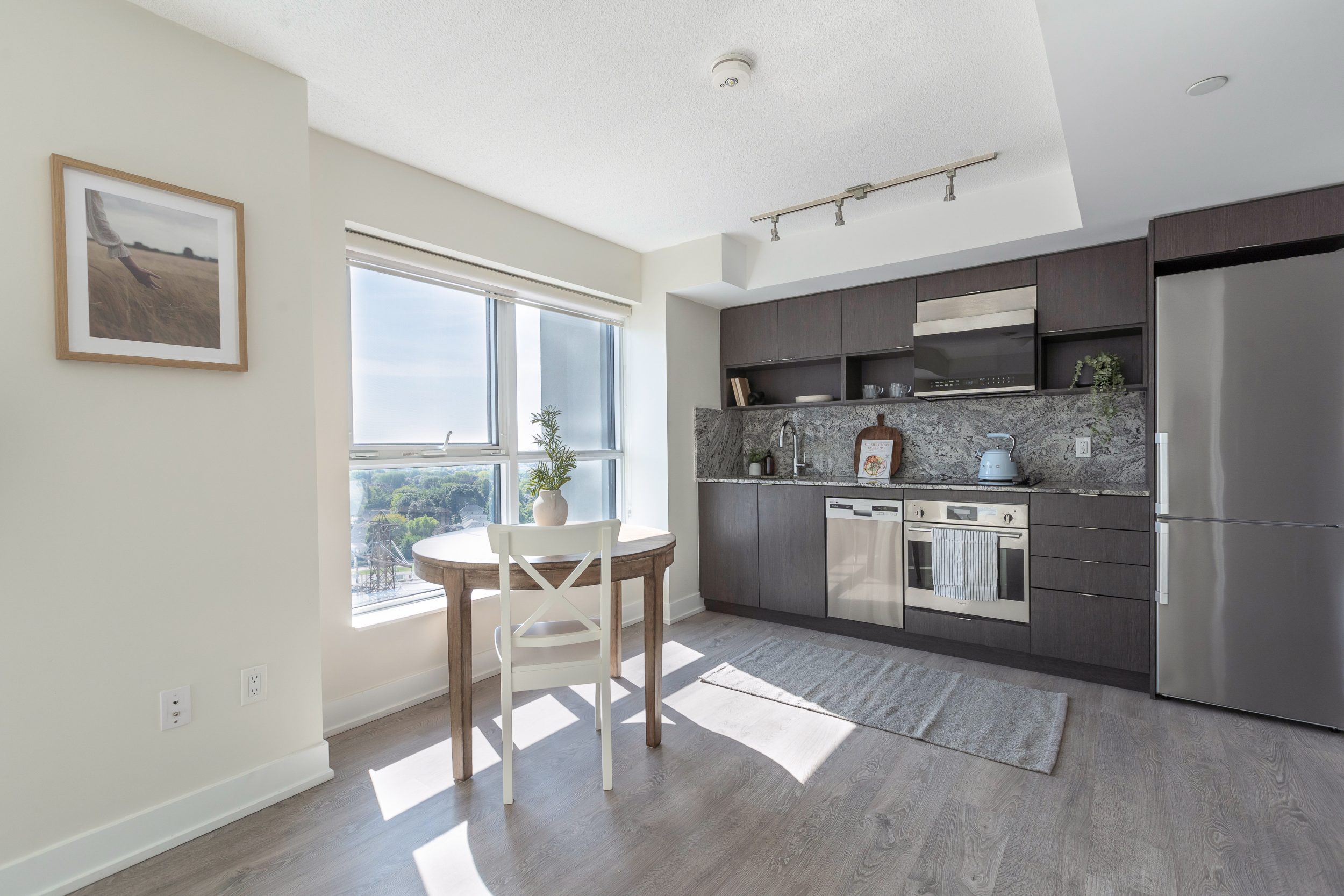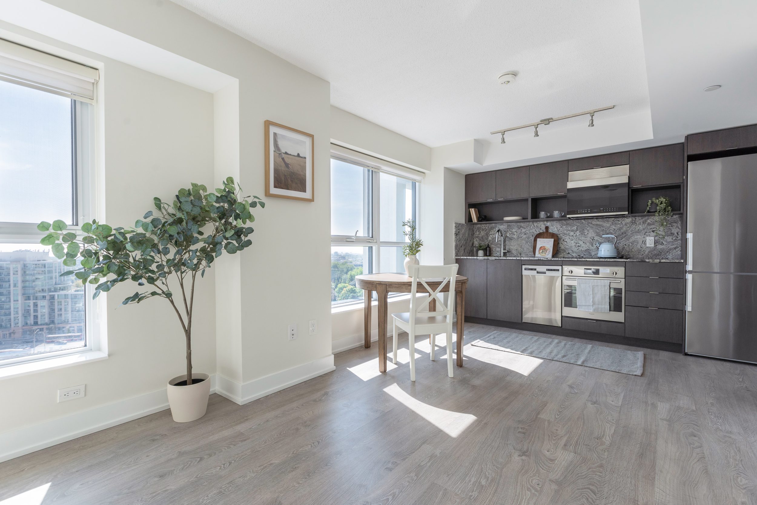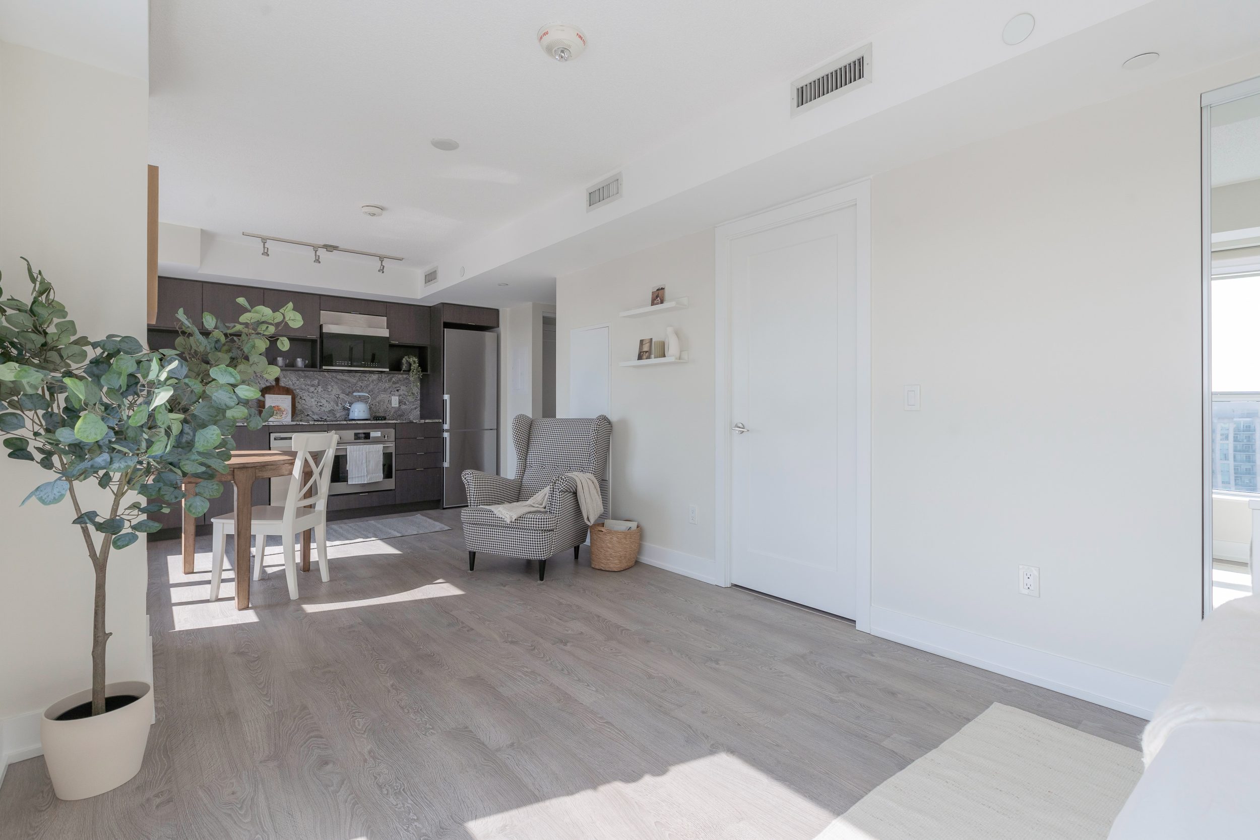 Welcome to BloorVista by Tridel. Suite 1423 is a rare find – a studio that’s spacious and functional to meet all needs. The smart south-facing layout is flooded with natural light from two oversized windows, framing lake views that make mornings a little brighter. Finishes include premium laminate floors, sleek cabinetry, granite counters, built-in appliances, and custom closet organizers that maximize storage. A locker is also included, so everything has its place. The resort-inspired amenities check every box: indoor pool, yoga studios, full fitness centre, basketball court, party lounge, games room, theatre, rooftop sundeck with BBQs, concierge, bike storage, pet wash, and visitor parking. Steps to Islington subway, with quick access to the QEW/427/401, Sherway Gardens, local shops, parks, and trails. Downtown in 20 minutes. One storage locker included.