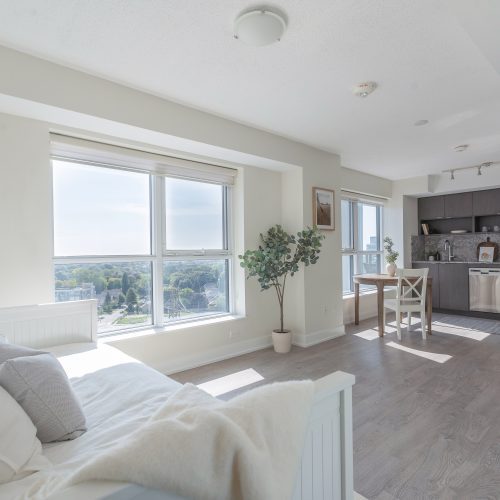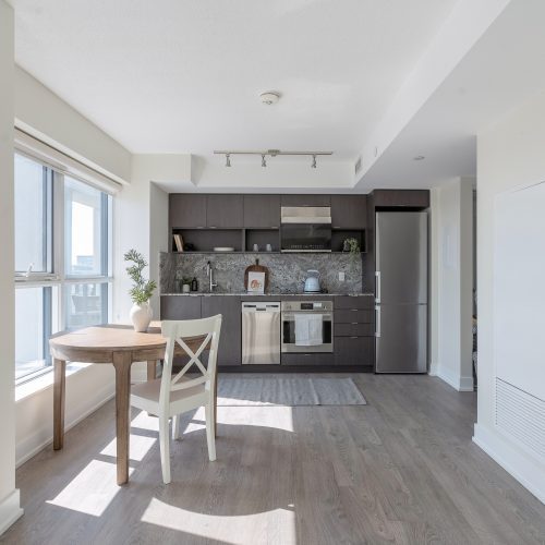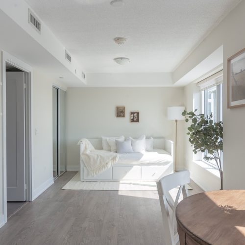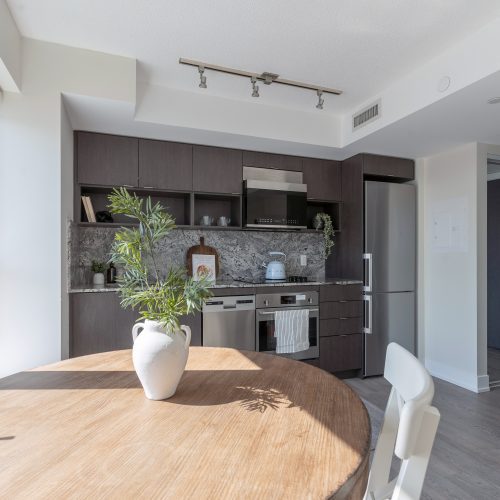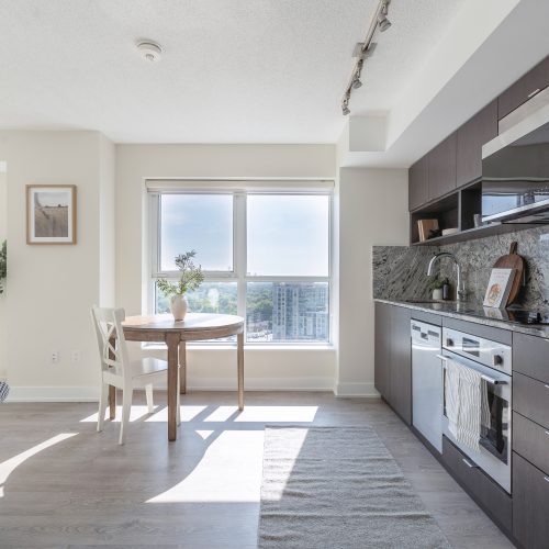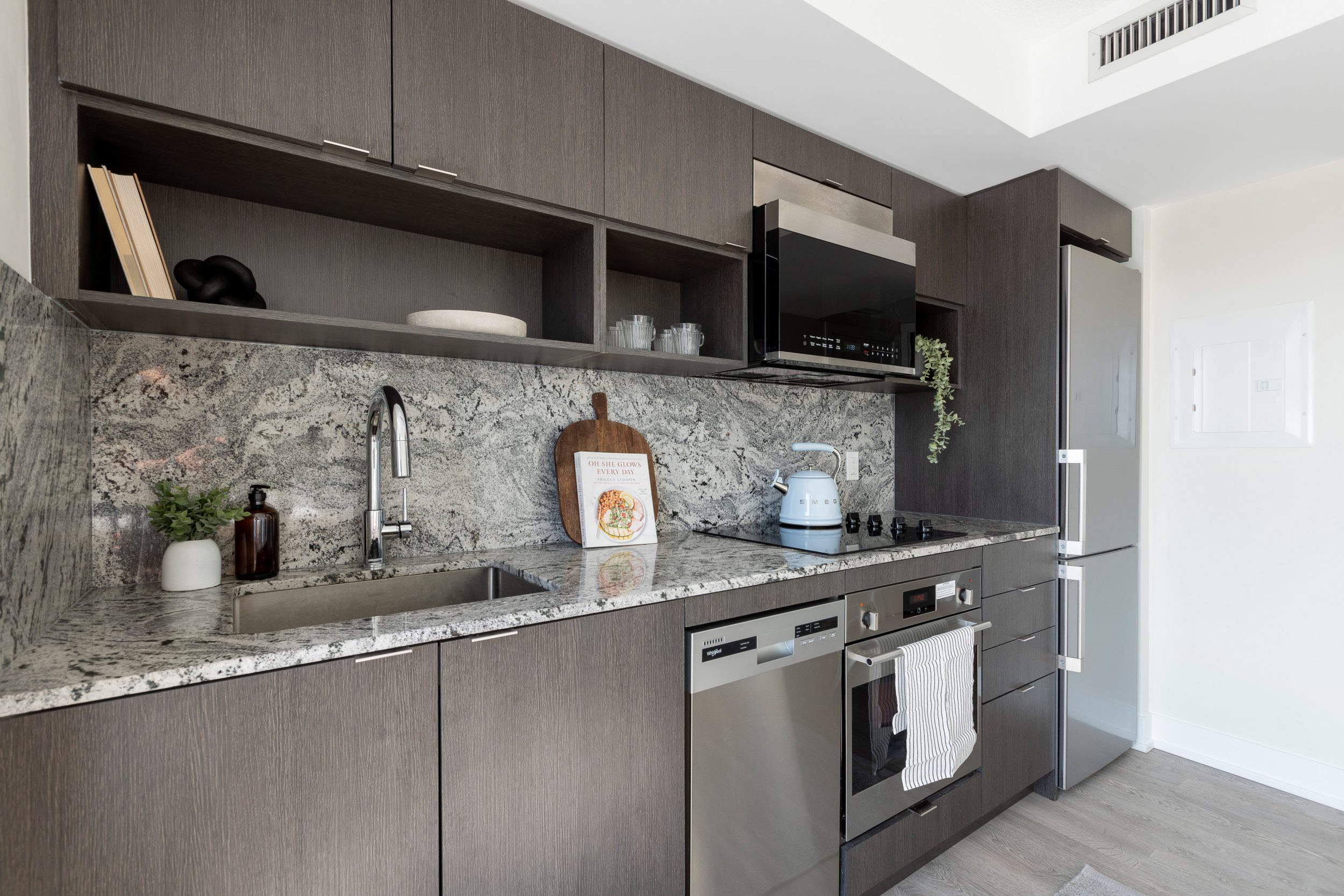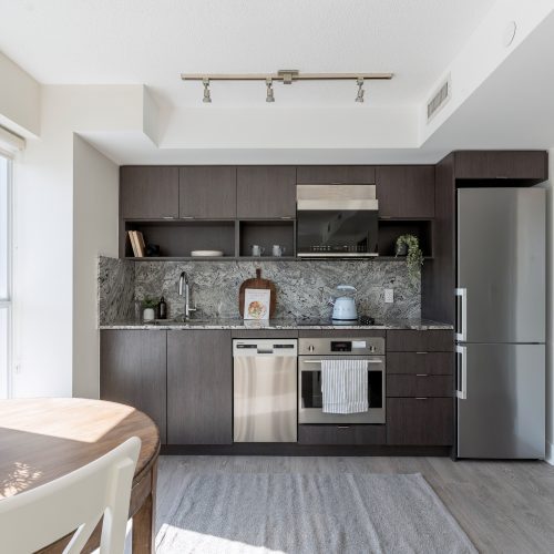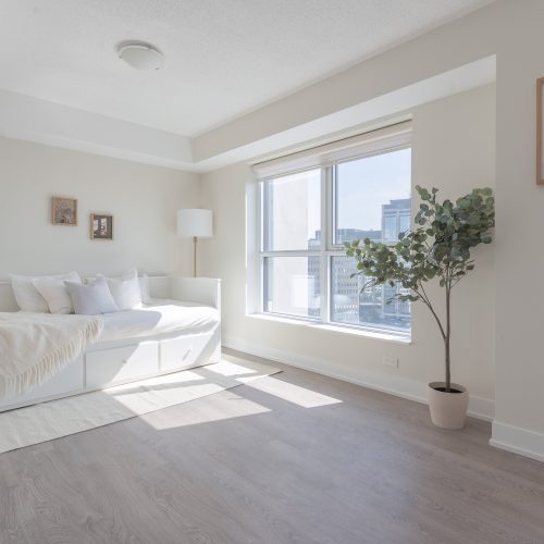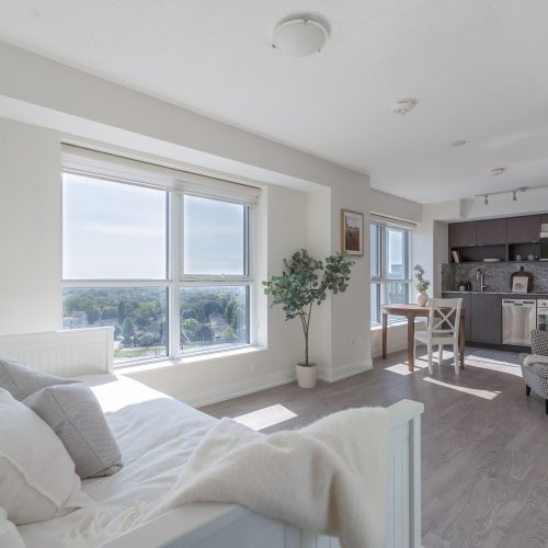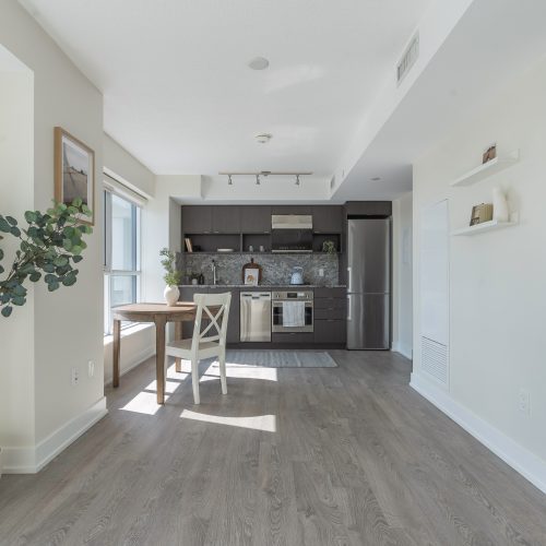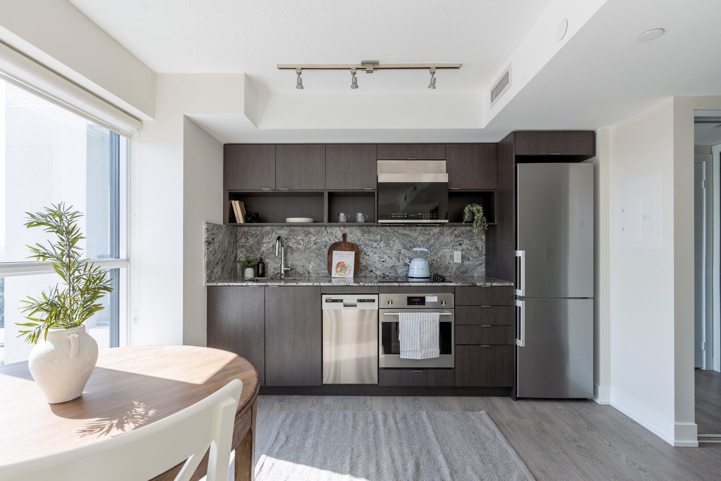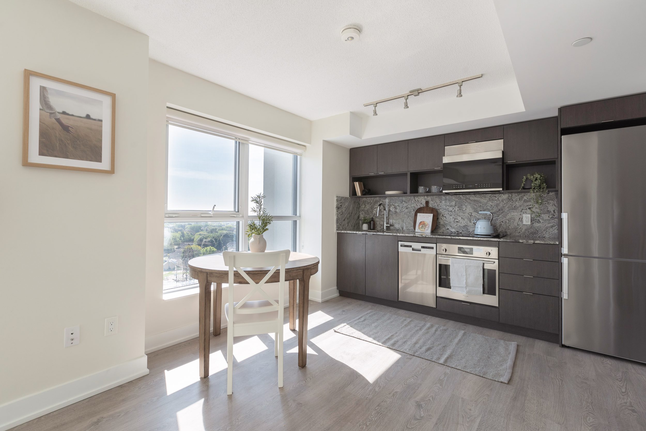 Welcome to BloorVista by Tridel. Suite 1423 is a rare find – a studio that’s spacious and functional to meet all needs. The smart south-facing layout is flooded with natural light from two oversized windows, framing lake views that make mornings a little brighter. Finishes include premium laminate floors, sleek cabinetry, granite counters, built-in appliances, and custom closet organizers that maximize storage. A locker is also included, so everything has its place. The resort-inspired amenities check every box: indoor pool, yoga studios, full fitness centre, basketball court, party lounge, games room, theatre, rooftop sundeck with BBQs, concierge, bike storage, pet wash, and visitor parking. Steps to Islington subway, with quick access to the QEW/427/401, Sherway Gardens, local shops, parks, and trails. Downtown in 20 minutes. One storage locker included.
